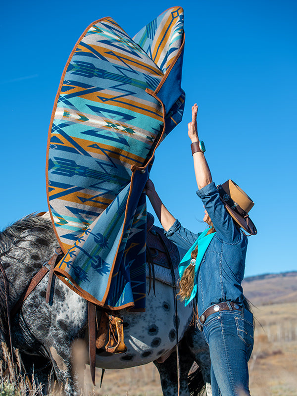 Bringing back the fun and sensible style of a cape, this will keep you just the right temperature while you’re out and about. Our cape is reversible, offering two wearing options displaying different hues of blue. Currently stocked, but this blanket is discontinued, and will not be restocked.